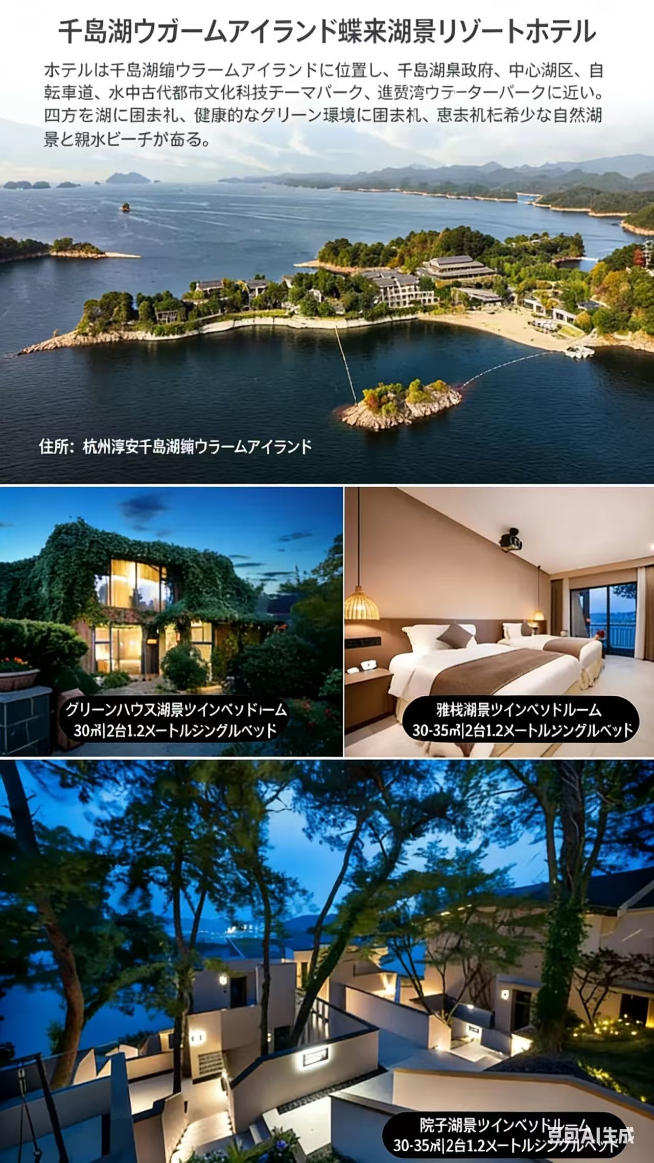 1. Qiandao Lake Warm Island Dielai Resort (千島湖・温馨島蝶来リゾート)